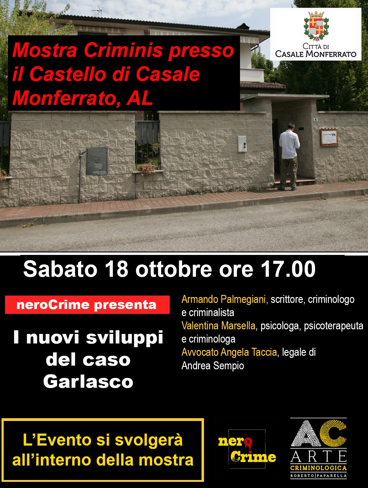Sabato 18 ottobre 2025 alle ore 17,00 nel torrione del secondo cortile del Castello del Monferrato, si terrà l’incontro di approfondimento dal titolo “I nuovi sviluppi del caso Garlasco”, organizzato da Nero Crime e Arte Criminologica nell’alveo delle iniziative collaterali legate alla mostra Criminis.