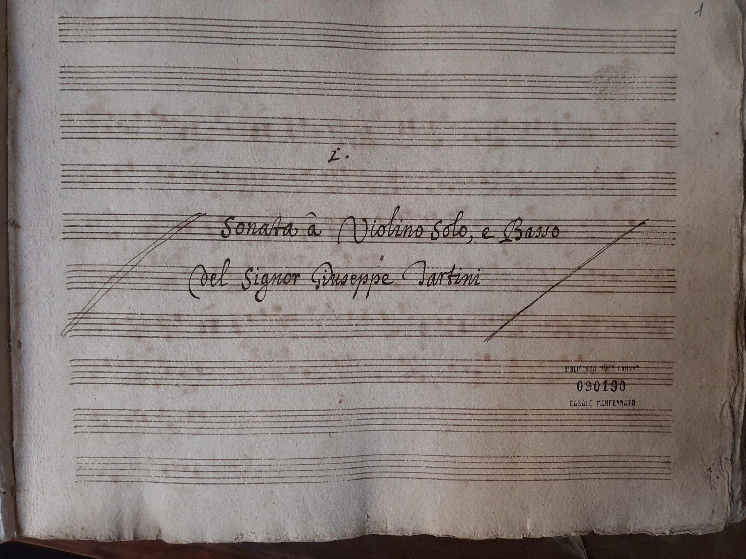 Si tratta di “Sonate n. 2” di Giuseppe Tartini, datato fine Settecento e corredato da nota di possesso del conte Cozio, che testimonia la raffinata conoscenza musicale e collezionistica di questo importante nativo di Casale Monferrato.