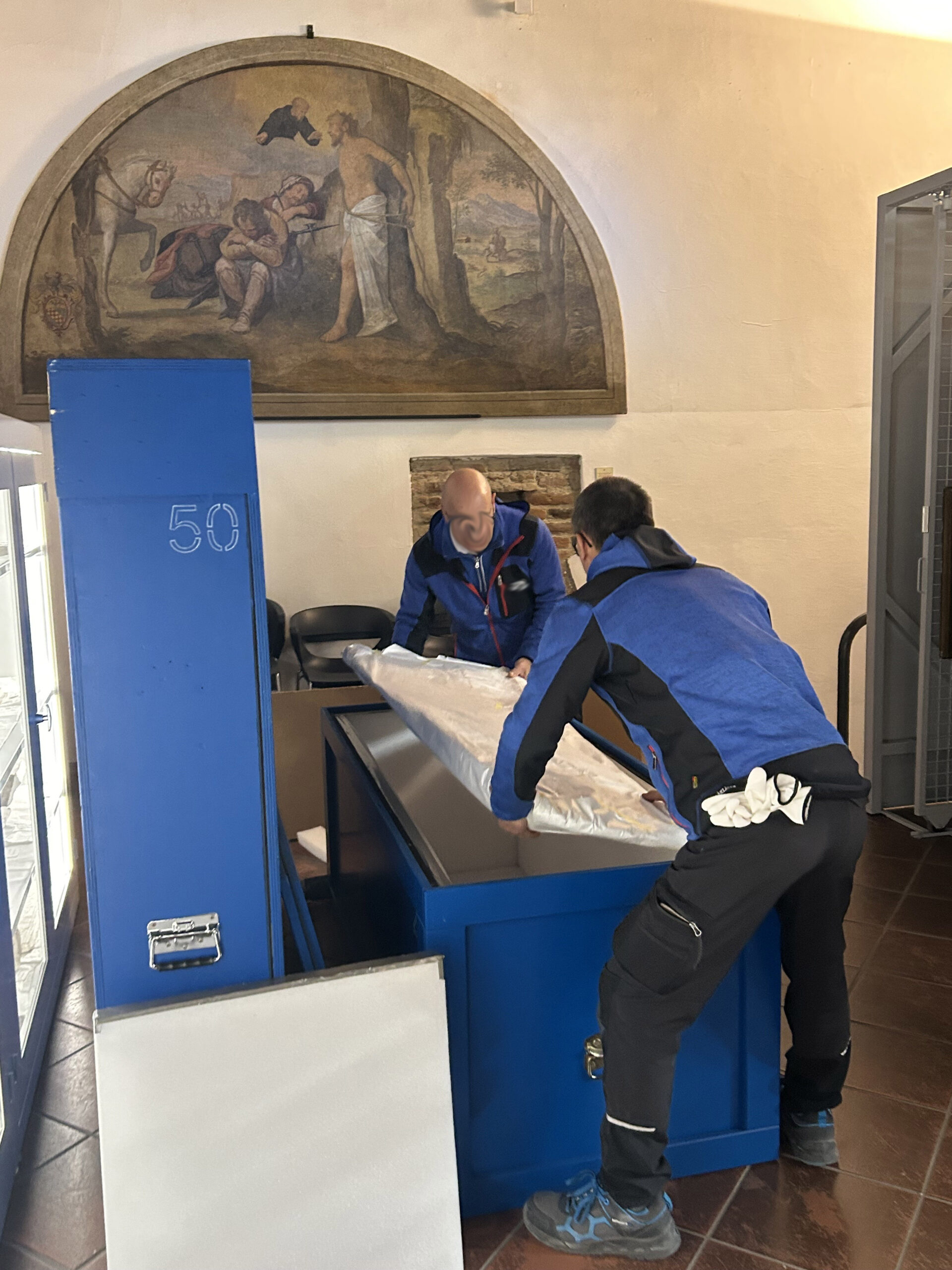 Le operazioni di imballo, affidate dagli organizzatori della mostra a una ditta specializzata nell’ambito della movimentazione delle opere d’arte, si sono svolte sotto la supervisione del personale museale.