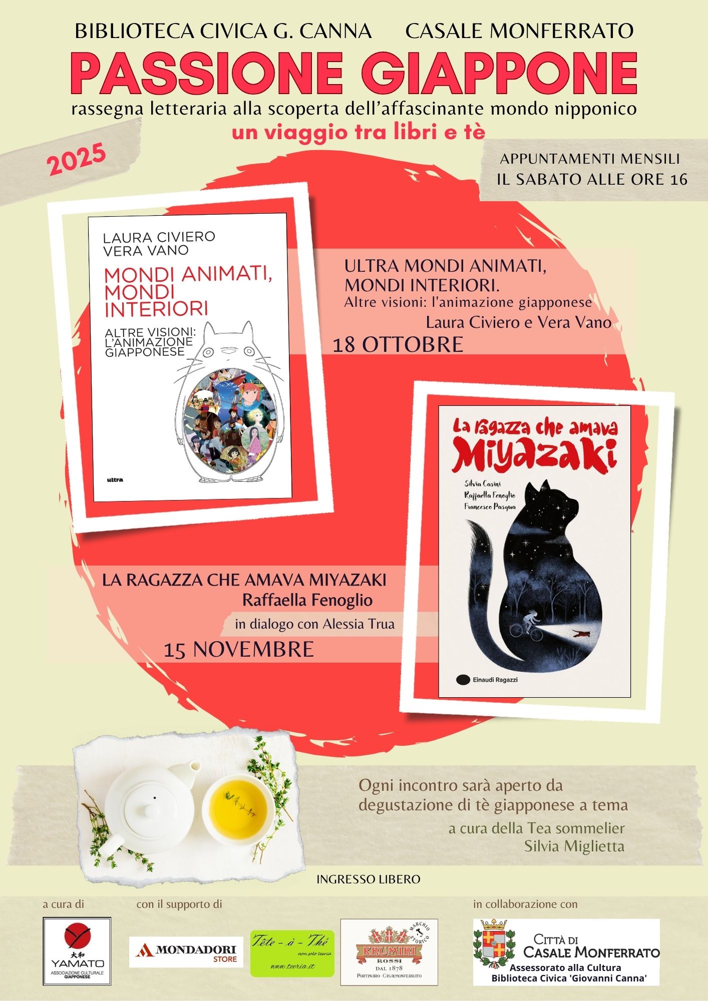 La Biblioteca Civica G. Canna di Casale Monferrato e l’associazione culturale Yamato, propongono la rassegna libraria “Passione Giappone, un viaggio tra libri e tè”, due appuntamenti dedicati alla cultura nipponica, con degustazione guidata di tè giapponese.