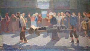 Attraverso le opere in mostra viene inoltre evidenziata l’influenza esercitata dalla lezione bistolfiana sugli artisti contemporanei: gli sconvolgimenti introdotti dalla modernità e, soprattutto, gli effetti della Prima guerra mondiale modificano profondamente la sensibilità dell’opinione pubblica, che individua nuove figure eroiche, spesso legate al sacrificio dei caduti. Da questa frattura emergono nuovi percorsi stilistici e interpretativi, tra cui quello rappresentato dalla produzione di Baroni.